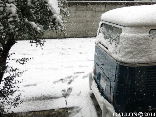昨日の大阪は、珍しく結構な量の雪が積もりました。VWバスも雪まみれです。リアルタイムでガロンのFacebookページにこの写真載せたんですが、北海道と石川県からコメントがきまして、どうやら大阪の方が降っていたようです。