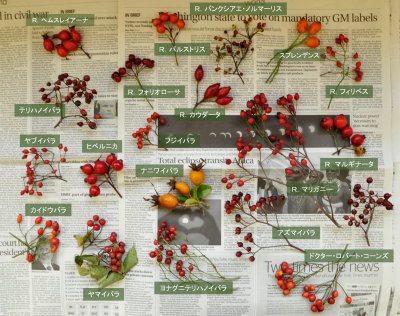 JUGEMテーマ:佐倉草ぶえの丘バラ園 今日は冷たい雨降りです。 このところの寒さで、膨らみかけた蕾もうなだれて 咲いたバラも色を失いつつあります。 本格的な冬到来です。 バラの実は、ボランティアさんとのクリスマスリース作りに使いました。 残りは、鳥たちが美味しく(?)食べてくれるでしょう。 リース作りに使った実を集めました。 並べるとバラの実の個性がよくわかります。 2016年あと少しです。今年も皆さまに大変お世話になり...