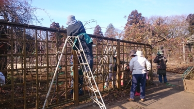 JUGEMテーマ:佐倉草ぶえの丘バラ園 寒〜い晴れの日が続いています。こんなお天気は絶好の誘引日和です。 1月のバラ園では、ひたすら去年のバラの結束をはずして、古枝を整理して、 新しい枝に更新、そしてスクリーンに誘引しなおす作業が続いています。 誘引作業は、初夏に良い花をたくさん咲かせるために必要な作業です。 草ぶえの丘バラ園の誘引は、 1.病虫害を防ぐため、バラにまんべんなく日の光が当たるように、風通しが良いように 2.そのバラの...