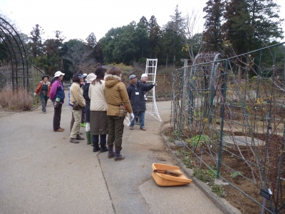JUGEMテーマ:佐倉草ぶえの丘バラ園 昨日1月24日、今年2回目のつるバラの誘引講習会を行いました。 どんよりとした曇り空の下でしたが、 寒さを忘れて皆さん元気に講習に参加してくださいました。 前原理事長からつるバラの誘引作業の説明を聞く参加者の皆さん 草ぶえの丘バラ園の誘引は、バラが病気にならない工夫と 誘引後のバラの美しい姿に特徴があります。 前原理事長の見守るなか、実際に誘引作業をする皆さん バラによって、その誘引方法は違います。 初夏に咲くバラの姿を想像しながら作業が進みます...