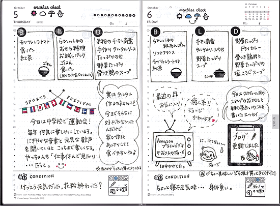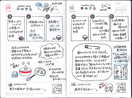 EDiT 1日1ページを始めて1か月。 こんな調子で↑毎日欠かさず日記をつけることが出来ました。 調子の悪い日とかお出かけしていた日などは 食べたものだけを記録しておいて 後でまとめて書いたりもしています。 無理なときは白紙でもいいと思っているのですが 今のところとても楽しいので苦痛感はゼロですね♪ 大きい画像...
