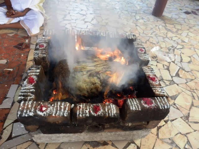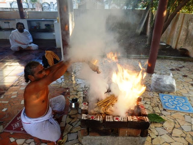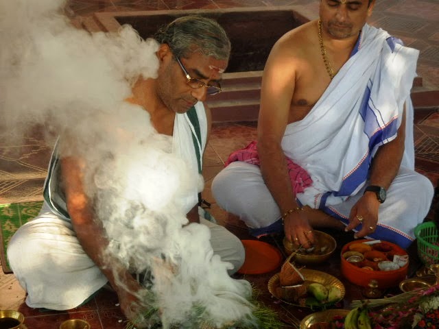 2014年3月8日、インド・チェンナイ郊外にて、ヴェーダ祭祀であるガナパティ・ヤジニャが日本人の依頼者のために実施されました。ラーマムールティ師以下6人ヴェーダの専門家(パンディタ)により、障害除去の自然の力であるガナパティのマントラが3時間に渡り炎の中の炉に供物を捧げながら、数百回唱えられました。