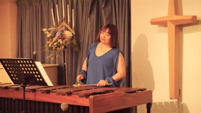 「近江商人の先義後利に学ぶ〜たらいの営業道〜」レポート ■音楽ステージ:幸田ゆいさん・金知明さん マリンバ奏者の幸田ゆい(こうだ)さんが、演奏された。 ▲幸田ゆいさん(と、マリンバ) マリンバは木琴(鍵盤打楽器)ながら、大型で大がかりなもの。豊かな響きがあって、心が震える感じがする。倍音が出ていて、美しい音が重なって出てくる。マレットというばちで、巧みに奏でる。 最初の曲は、片手に2本ずつ。合計4本のマレットが鮮やかに動いてプレイ。 落ち着い...