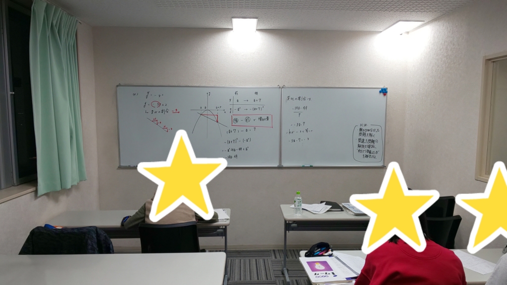 JUGEMテーマ:高校受験 いやあ、大雪にならなくてよかったです。 生徒の様子を写そうとすると、 ホワイトボードが見えませんね。 今日は中3の授業でしたので、 大雪になって授業がつぶれたら、 受験前の貴重な1コマがなくなってしまうところでした。 県立入試の解説をしていました。 「どうしてパッと解けるの?」 という疑問はよく聞かれます。 でも、 パッと解いているわけではないのです。 短い時間ですが、 頭の中でいっぱ...