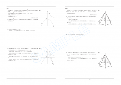 JUGEMテーマ:高校受験 今日は,少し難しめの問題。 左は,どうしても一度,放物線を傾けた図を作成してみたかったので……。某私立高校の問題を探したんですが見当たらなかったので,設問までそれっぽく自作したものです。思いつきで作ったので,それほど丁寧にチェックしていないません。「実は解答不能でした」なんてことになってなければいいんですが……。その某私立高校なんですが,一時期はこういう問題が毎年のように出題されていたんですが,こういう問...
