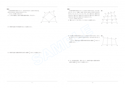 JUGEMテーマ:高校受験 いい問題を思い出したので,今日は入試問題ではなく,オリジナルです。ただし,オリジナルといっても,有名問題に少し小問を追加しただけですが……。 左は,(2)までなら,まぁ,ありふれた教科書レベルの問題です。(3)はというと,面積が半分になっているのは予想できるものの,証明には少しテクニックを要します。私も何年か前にはじめて証明してみたときには,線分の長さを文字で設定し,図形の性質と計算との合わせ技として解いた気がしますが,実...