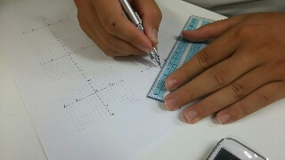 中1数学sの話 「さあ比例の直線を書こう!」 ということで書いてもらったのですが・・ うーん まず 定規は両端をおさえましょうね。 そうしないと 定規か動いてしまいます。 それから、 2点をとれば確かに書けるのですが、 近い2点で書くのは失敗することが多いので止めましょう。 (↓悪い例) 近い2点で書いてしまうと、 グラフのはしの方でずれてしまいます。 なるべく遠い2点で書きましょう。 (↓いい例...