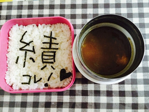 JUGEMテーマ:中学受験 こんばんは。 今日も1日終了です! さて、KJの中学受験コースは夕方コマと夜ゴマの間にお弁当時間がありますが、 こんなお弁当を持ってくる子も! カレーライスですが、のりで「績」の字が! どうやら、家で漢字練習をしていたときに、 「成績」の「績」を「積」と書いてしまって、 なかなか覚えられなかったようです! それを見たお母さんが作ったお弁当がこの「績」。 お母さんの愛情満載のお弁当ですね! サイコーのお弁当です! =========お知らせ===...