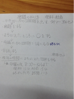 塾でたくさん宿題がたくさん出されますーーーー。 これをどうにかやりっぱなしではなく、実のあるものにしよう!と話し合いました。 今まではやりっぱなし(^^;) とにかく、やらなきゃ始まらないので話して、紙に書いて実行!! ・準備物 テキスト(宿題) 【力の5000題】【特進クラスの理科】を出す。 タイマーを30分にセット。 1、宿題をする。 2、間違えたところに〇をつける。 3、特進クラスの理科や力の5000題で調べる→線を引く 4、音読する -------------------------------...