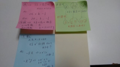 JUGEMテーマ:塾と家庭教師 みなさん、こんにちは。 さて、 GWもど真ん中。 気分はお出掛けモードですが、 お勉強のご依頼ある限り、参上仕ります。 昨夜も、 中2生と数学をしてきた次第です。 多項式の足し算・引き算んとこですね。 また、 筆算も着手。 足し算はいいんだけど、 引き算で壁にぶち当たる展開・・・ (X−3Y)−(3X−Y−1) =−2X−4Y−1 としてしまうパターン。 X−3Xは、分かるらしい。 でも、 後半が+Y+1にな...