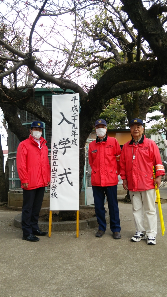 JUGEMテーマ:塾と家庭教師 おはようございます、ほっしーです。 昨日今日はあちこちで入学式が行われていますね。 塾の目の前にある山王(さんのう)小学校も、今日が入学式でして、 町会の方々と一緒に、昨年に引き続き案内のお手伝いをさせていただきました。 写真は無事、可愛い新一年生と保護者の方々をお見送りした後に 撮っていただいたものです。せっかくなので、載せてみました。 今年は去年に比べて桜の開花...