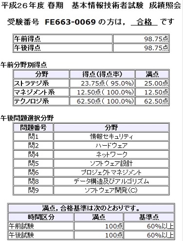 全国の女子高校生の皆さん、こんばんは。 金もなければ、やる気もない穐原です。宝くじ当たらんかなぁ〜。 さて、少し前に、基本情報技術者試験の合格発表がありました。 私の結果は以下の通りです。 これで通算5回目のチャレンジになりますが、今回も満点は取れませんでした。 自己採点では、午前・午後ともに1問間違いだったので、まあ、そんなもんだろうという予想通りの結果です。 そして午後は、また、問8の擬似言語(データ構造及びアルゴリズム)を間違えてました。 アルゴリズムの授業を担当している...