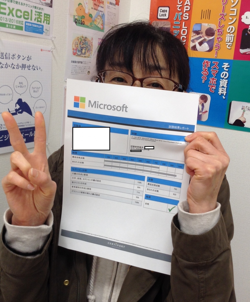 こんにちは! 札幌市北区と石狩市のハロー!パソコン教室 イトーヨーカドー屯田校 インストラクターの柴野です!! 先日合格したSさんの合格体験記となります! Sさんは半年前に入会し、就職に有利になるよう資格取得を目指しました その結果就職での最重要資格であるMOSへ合格!! 今回はWordのMOS資格である Microsoft Office Specialist Word2016 と、言う資格を取得されました!! ★資格を取ろうと思ったキッカケは?★ ...