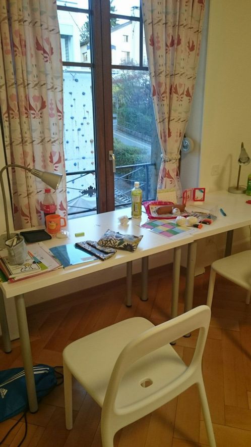 JUGEMテーマ:海外留学 − スイス・ジュネーブ 新入生頑張れ!2人の姉妹がスタートを切った。お姉ちゃんの方が少し引っ込み思案で妹はどんどん前にでも、そんな二人で新しい部屋の模様替えをしたとかベッドも机も洋服ダンスもすべて移動して(*^-^*)広くて清潔感あふれる素敵な部屋ですよ〜!この学校は原則二人部屋。IBが始まるころには全員独り部屋それだけ勉強がきつくなるんですね。部屋での飲食は禁止されてます。でも、やさしい寮母さんが今日は特別にOK美味しそうにおにぎりをほおばって(^^♪姉妹そろえば怖いものなし...