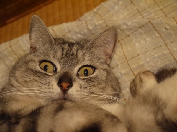 キラッキラお目目のグリコさん。 場所は、小上がりとタンスのあいだ、例のイスの前です。 (⇒☆例のイス) そして、見上げているのは、そのイスに座っているオバです。 なにゆえ、こんなにキラキラしているのか。 ご説明しましょう。 このとき、黒っぽい姐さんの頭の中では、 次のような推理が進行し、論理的帰結が得られていたらしいのです。 今は朝である。 + ちょっと前にオバが庭に出て行った。 + 数分で戻...
