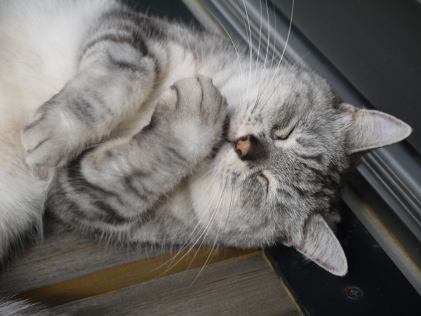 ★日本語文型【たとえ...ても、】 やっぱり おそとは いいにゃ。 ウリ猫、ご満悦です。 たとえ、 こんな状況で――、 マダムの冷たい視線を浴びていようとも、 雨の止み間は、貴重です。 たとえイマイチはっきりしないお空でも、 きょうは、久しぶりの猫干し日和。 ころんころ〜ん♪ 柿も色づきました。 包帯から解放されたグリコさん、 この顔が、彼女のニコニコ顔。...