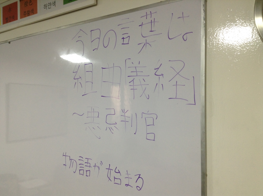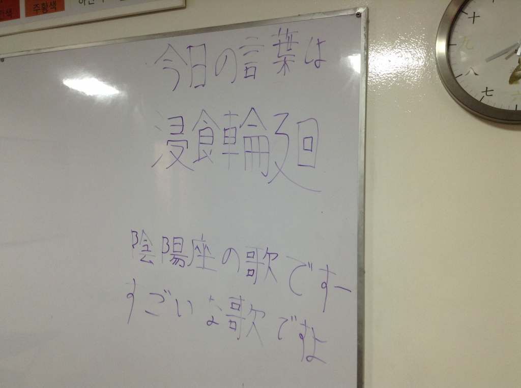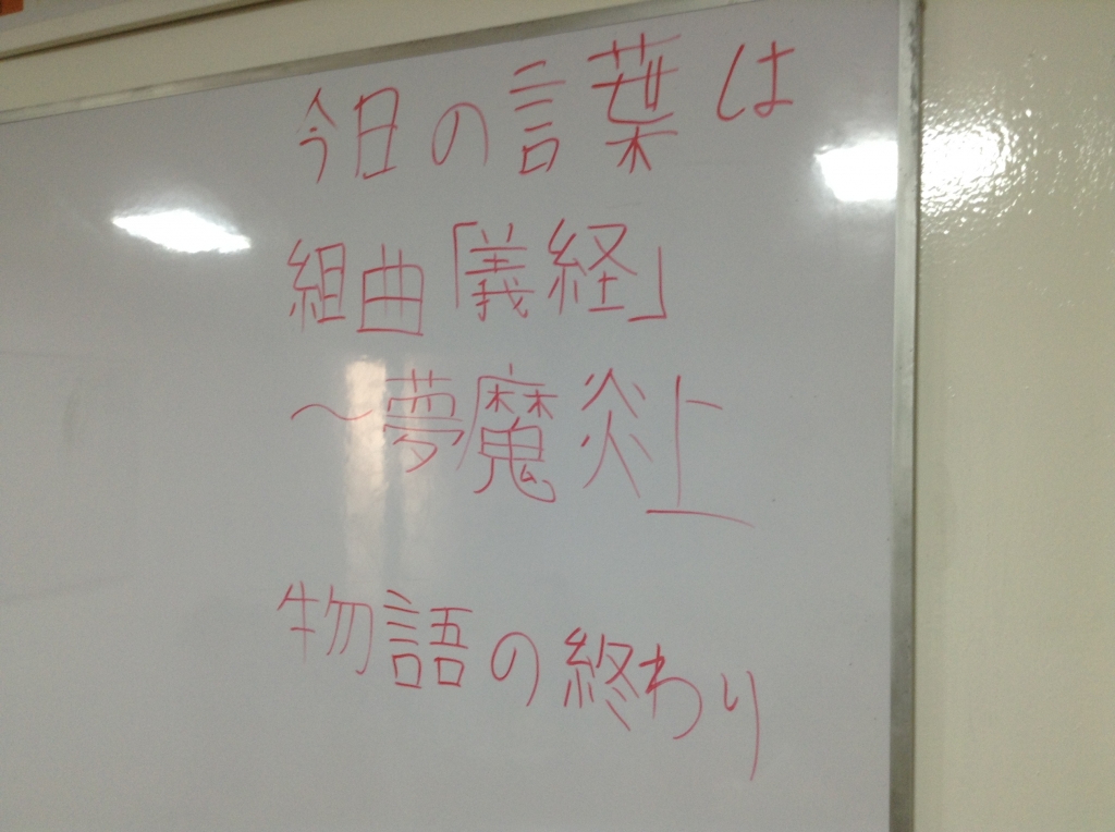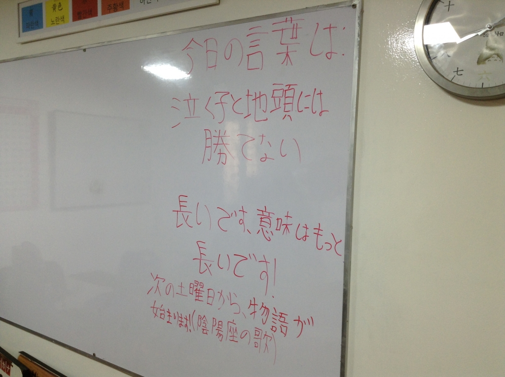 JUGEMテーマ:日本語教育 今日の言葉。 ことわざとは珍しい。 これまた何で? 「他の言葉を探してる時に 偶然見つけたんです」 あ、そういうことなのね 「次の土曜日から物語が始まります! (陰陽座の歌)」 という、来週からの予告もあり、 まだまだおもしろくなりそうな予感 来週といえば・・・ 学生ども!テストだじょ 「えー!!!金曜日に飲みに...