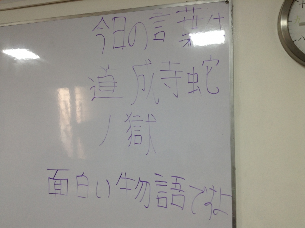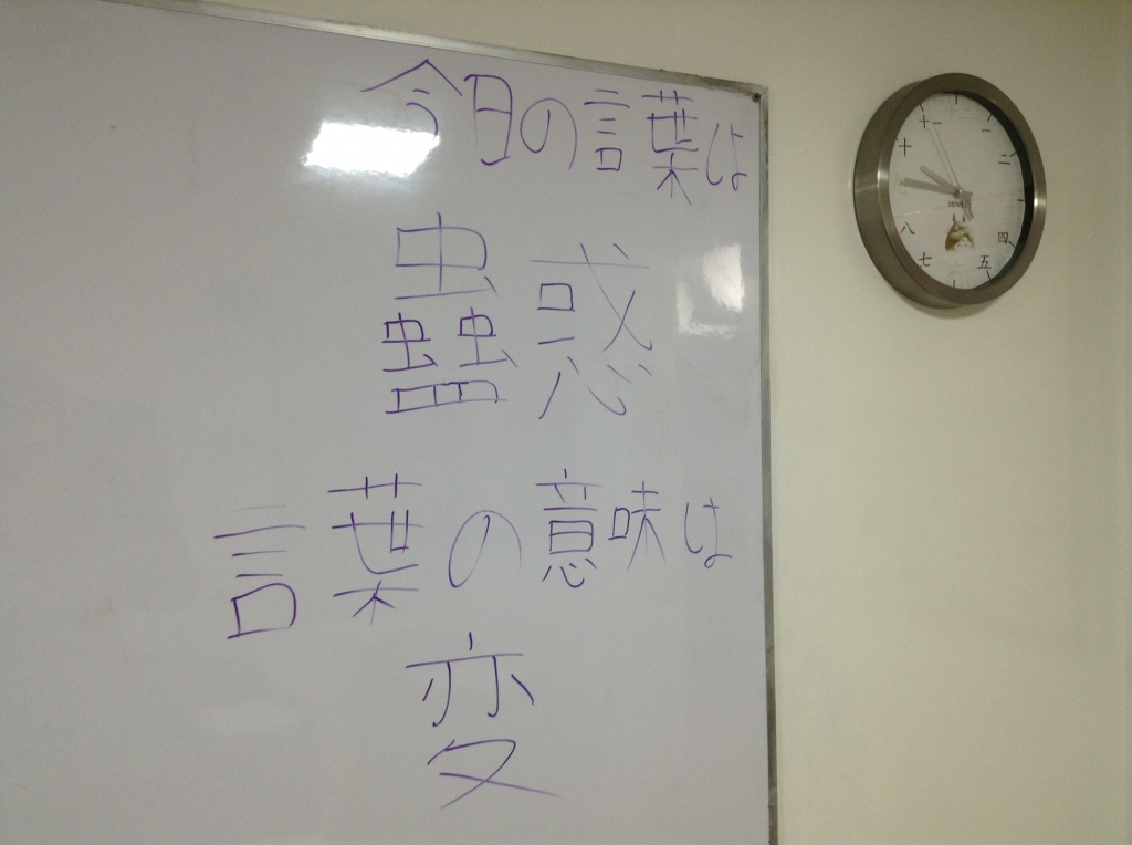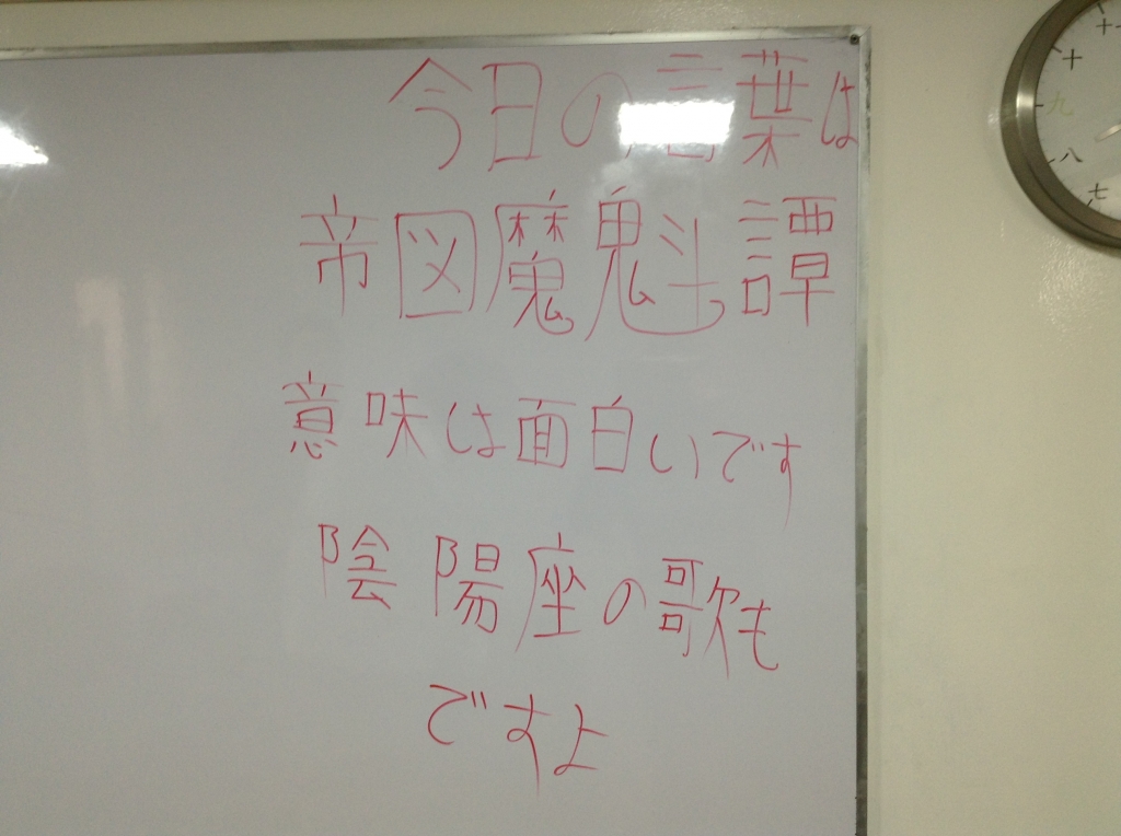 JUGEMテーマ:日本語教育 今日の言葉 ふむ……… 今回はノーコメントだな( ̄▽ ̄) さて、今日は 2人も教科書を 忘れてきやがりまして、 その2人の間にまんまと座ってしまった 学生クン。 「教科書見せろや!ψ(▼_▼)」 と脅されておりました クラスのみんな、 仲良しこよしでいいことだ(?)