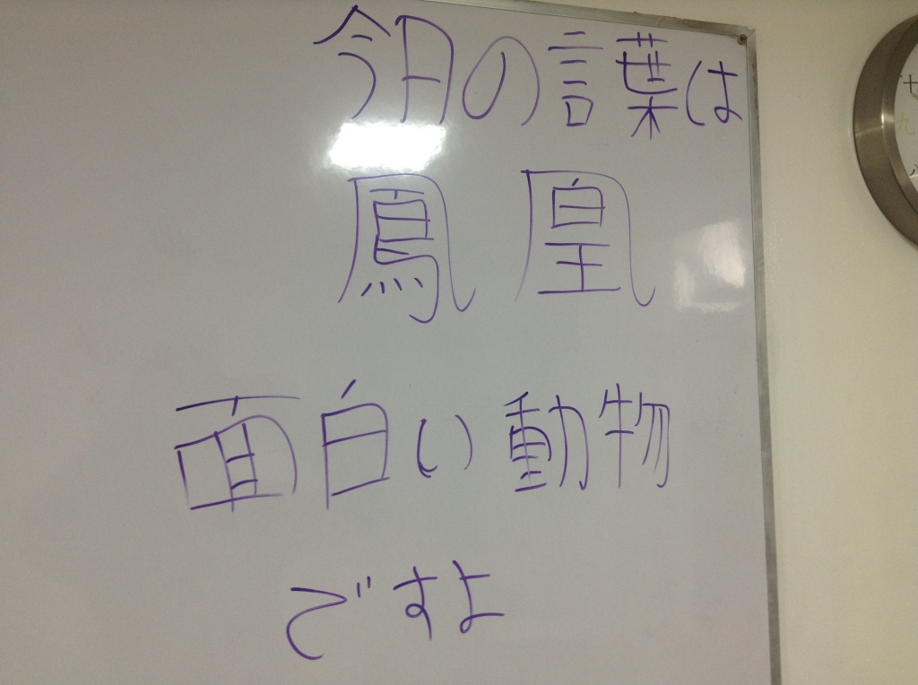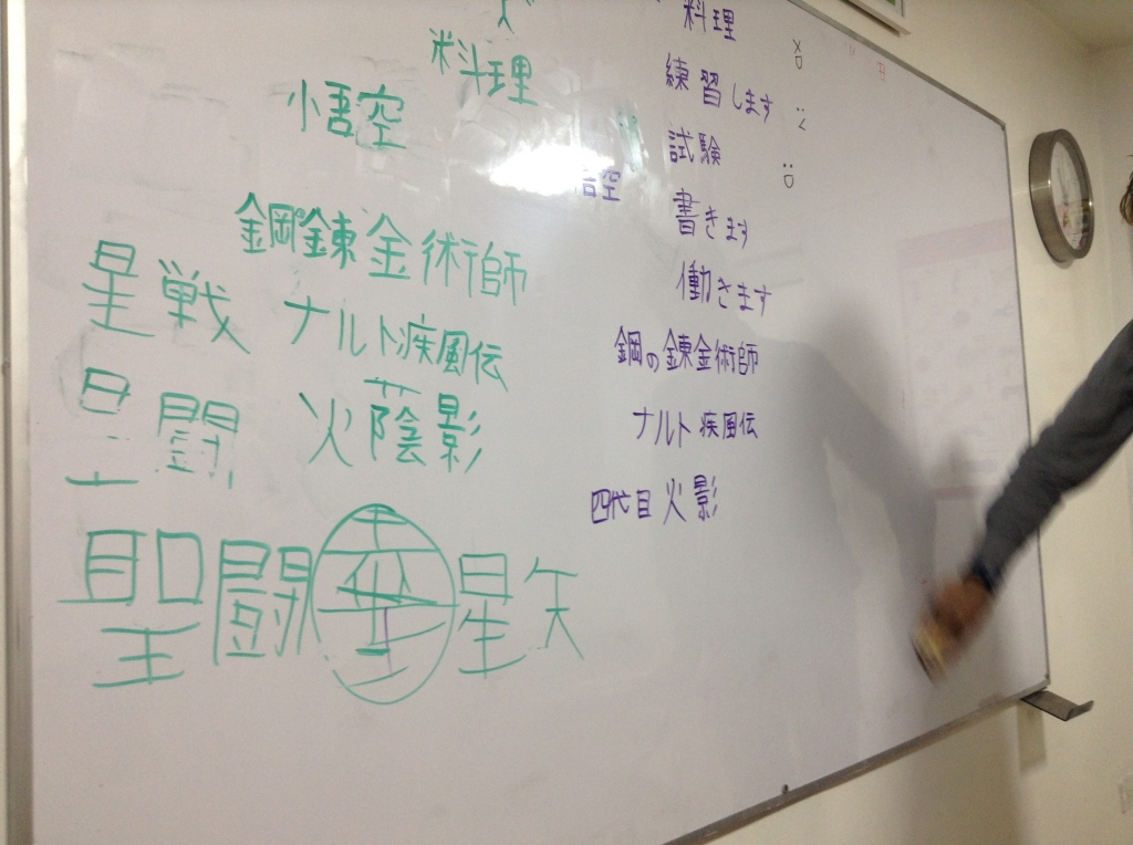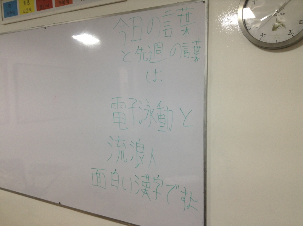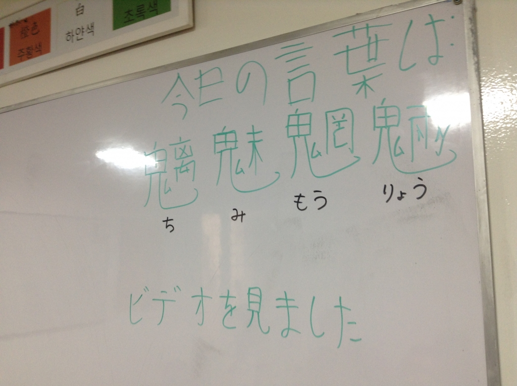 JUGEMテーマ:日本語教育 昨日の 「今日の言葉。お化けがいっぱい!」 の続き。 さて、クラスですが、 「魑魅魍魎」 に惑わされたか!? 学生ども、 やたらと漢字に燃えだしました。 みんなホワイトボードの前に立って、 いろいろ漢字を書き始める! そして、 「センセー、何か問題出してー!」 そうだねぇ。じゃあ、 チミたち、アニメが好きだから・・・ ...