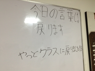 JUGEMテーマ:日本語教育 風邪をこじらし、 3週間もクラスを休む羽目になった学生クン。 今日久々に登場です。(^_^) ということで、今日の言葉は お帰りなさーい!(^o^)/ 学生クンがきて、久々にクラス全員出席。 他の学生たちもうれそそうです。 よーし!今日も気合い入れて 日本語教えるぞー!!! と思いきや・・・ 久々に会った学生ども、 ポケモンGOの話題に夢中。 ...