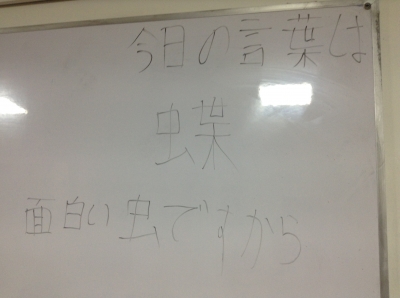 JUGEMテーマ:日本語教育 今日の言葉は・・・ 何が面白いの?ってきいたら、 「芋虫からさなぎになって、きれいな蝶になる、 その変わりようが面白い」 だって。 なるほど。 で、ほかの学生どもが 「何て読むのー?」 と聞いてきたので、 絵を描いたら分かりやすかろう! と思って、描いてみた。 学生ども、 「ふーん・・・」 ...