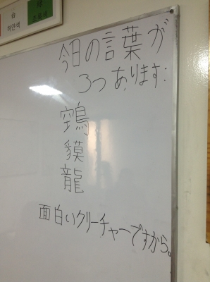 JUGEMテーマ:日本語教育 今日は土曜日。 アカデミーでのクラス。 いつもは学生が「今日の言葉」を書いてくれます。(^_^) がっっっっっ!!! ただ今アカデミーは夏休み中。 次回の「今日の言葉」は 7月9日(土)からになります。 楽しみにしていらっしゃる皆さまには 2週間お待ちいただくことになりますが、 学生たち、休みを利用して 旅行に行ったりしてるみたいなので、 休み明けの「今日の言葉」がどんなものになる...