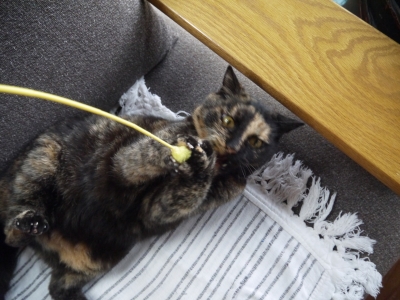 ★文型【いい〜】ブレブレ写真でご推察いただきたい、この躍動感。いい年をして、じゃらしに夢中なグリコ!ちゃいろいねえさん、御年15は過ぎているはず。ニンゲンに換算すれば、還暦はとうに過ぎて、古希、いや、喜寿が近いかも?外野のそんな声をよそに、なんの、なんの、ひゃほ〜〜い!今が青春、真っただ中!※日本語の解説と、おまけ写真につづく。(↓)