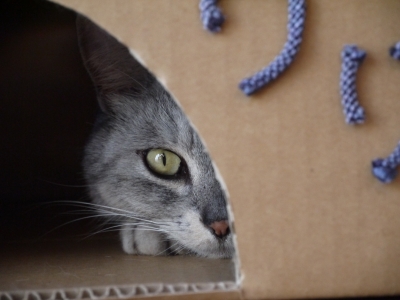 ★文型【〜すぎる】めずらしく灰色しましまがフォトジェニック♪ウリは、ただいま、避難中。グリコから?いいえ。冬のお日さまから!あつすぎるですにょ!*ああ、もう、雪国・北国のみなさまに申し訳ない!南関東の当地は、晴れてさえいれば、お日さまさんさん。北風ぴーぷーの日でも、南が大窓の二階は、温室状態なのです。大雪に泣かされている地方のみなさま、冬至を過ぎた今、鉛色の雲の上では太陽が力強く輝いています。それを信じて、あとしばしのご辛抱!※「〜すぎる」の解説は、こちら(⇒☆)にあります。 で、この2011年暮...