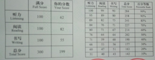 JUGEMテーマ:中国語 9月に受けたHSK5級の結果が出ました。 目標は180点… 結果は… 199点!!! 目標越えました〜〜。 やったー。嬉しい。 過去問より難しく感じていたので、180行かないかもと思っていましたが、 越えててよかった。 一安心です。 リスニング:62点 ギリギリ6割。 読解:82点 満足! 作文:55点 6割行きたかった… さて、今後はどうするか。 HSK5級を受けた人のブログとかTwitter見ていると、240点とか、 結構高い点数を取っている方が多かった。私は199点、200点まであと1点。 うーーー...
