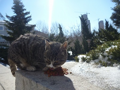 JUGEMテーマ:中国語 今日は猫と鳥が一緒にいたところを見れたのでその様子を *1,2日に気分が向いた時にご飯をあげてます。(毎回あげると生きていけなくなると思うので) *寮に戻って振り返ると鳥が寄ってきました。 *回り道して餌に近づく鳥 *射程圏内 *と思ったら鳥が二羽に。 *鳥も結構大きいので怖いのか餌を譲り渡す猫。 この後写真は撮れませんでしたが、楽しそうに鳥を追っかけまわしてました。 以前キャットフードを近づいてきた野良犬にあげてみたことがあるんですが、匂いが強...