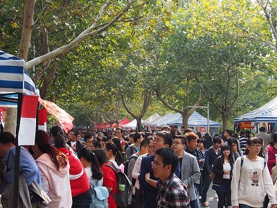 JUGEMテーマ:中国語 今日は授業が10時で終わり、留学生主体の国際文化際がありました。 *この通りに各国の出店があり、お昼頃には人で溢れていました。 *来来来来(ライライライライ)と元気に集客するキリジスタンの人 *先週の日中相互勉強でお世話になった外国語倶楽部。 左が許陽さんで土曜日に一緒に旅順へ行く予定。なんと部長さん。 餃子を売っていて、とても美味しかったです。 *日本人のブースも人気でした。 お味噌汁とおにぎりがセットで5元。やはりお味噌汁...