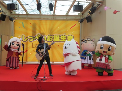 JUGEMテーマ:ゆるキャラ大集合 今年もららぽーと磐田で、しっぺいお誕生会が盛大に行われました。 ケーキを頭につけたしっぺいがオープニングセレモニーに登場! 全国から駆けつけたしっぺいのお友達キャラさんは・・・ 厚木市の「あゆコロちゃん」 あつぎの名産「アユ」と「厚木シロコロ・ホルモン」のブタがモチーフになっています。 鹿児島県伊佐市の「イーサキング」 名前の由来は、伊佐=13(...