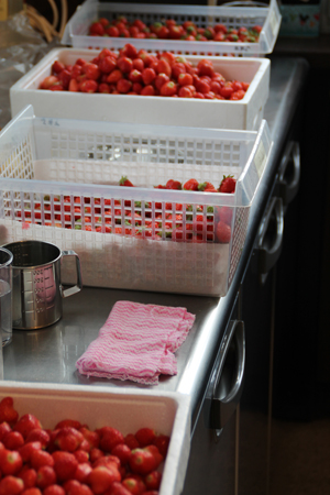 JUGEMテーマ:富良野市 2016年6月13日(月曜日)天候:曇り時々雨 最高気温:+15.4℃ 最低気温:+11.1℃ この日は苺が大量に入荷。 上富良野の山本農園さんと中富良野のおがた農園さんから沢山の苺を仕入れる事が出来ました。 夏が本番を迎える時期になり、苺の収穫も増えてきた様です。 朝からスタッフ皆で苺の仕込み作業。 忙しい朝です。 苺の品種は「さがほのか」 香りも良く、美味しい苺です。 苺の量が多いので、スタッフも急いで作業にあたります。 スタッフ皆で、苺スムージー...