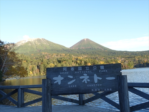 JUGEMテーマ:北海道の風景 思っていたよりも早くホテルへ到着できそうだったので、『オンネトー』に寄ることにした。 道幅が狭い場所での観光バスと工事車両のすれ違いで生ずる渋滞と湖畔の展望デッキに隣接する駐車場の混雑で時間はかかったけど、展望デッキから『雌阿寒岳』と『阿寒富士』を眺めることができた。 美しい山容を見て『雌阿寒岳』と『阿寒富士』に登ってみたくなった。 (チェックイン後に阿寒湖畔から見た『雄阿寒岳』)