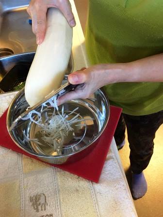 沖揚平(おきあげだいら)の大根、大部分はたくあんにするのですが、今年は切干に挑戦しました。 レトロなスライサーで千切りに。 電気の力を利用して乾燥。 菜っ葉部分も大切に。あらら、オサレ…ではなくて、この状態で干草を作ります。 大根の汁も味わい深いので、アルコールをたしなむときのチェイサーに。 スライサーでかけきれなかった切れ端は、フ...