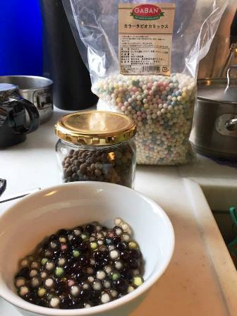 本日は当番さんへの一服に「タピオカミルクティー」をお出ししました。 寺庭特製レシピです。 カラータピオカとブラックタピオカ。 メープルシロップで味付け(#^.^#) 今回は岐阜県産有機和紅茶と豆乳を使いました。 「もちもちの食感がおいしい。」と、当番のみなさんに喜んでいただきました。 7月の屋台村「やくし茶屋」でも好評をいただいたメニュー。 またいつか一緒...
