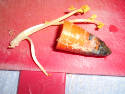 いきなり衝撃映像で申し訳ありません。 何だかわかりますよね! 秋に頂いた人参。この時期になると、凍るか根や芽が出てくるか、ハタマタ上のように腐って来るか 意を決して、根取り、芽取り作業をすることにしました。そして、綺麗になったら、また新聞で包んで ビニールに小分けして、発砲スチロールに入れなおす。これを、春まで数回繰り返します(アナログでしょ)。 我が家のお爺ちゃんに包む作業を手伝って貰い、大助かり。 昔懐かしくなって、母がよく作っていたピーナッツ和えを人参で作ってみました(...