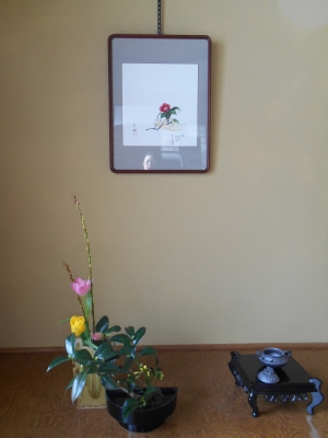 雪の多いこの時期、通ってくる方のレッスンに時々駅前教室を使うことに 本日のお床は絵の合作です。お家元と奥様のお筆によるもので、仏様の手?に赤椿。 黒石教室に、はるばる東京から絵が遊びに来てくれました。 春らしく、チュウリップと白い椿を添えて レッスンは田島万古(福島県)のお道具で。 今日は、雅遊に使えるように自分の印を作りました。 とても素敵な印が出来ました。次回の雅遊が楽しみです。 窓の外は、こんな感じ 春はまだまだですが、心なしか日差しが暖かになりつつあるよう...