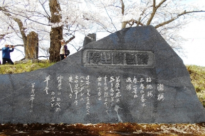 【春麗の瀧桜を詠んだ詩と団体写真】 瀧桜ばかりに目を奪われがちだが、背後の土手の上にはソメイヨシノが満開で、そちらに足を伸ばし瀧桜を見下ろすのも一興で、その土手に写真−1の『瀧桜』と題の付いた詩碑があった。 【写真−1 瀧桜の背後の土手にあり他にも石碑がいくつか】 この碑は福島県いわき市小川町出身の『草野心平』の詠んだ詩が彫られていて、『梅桃桜 三春の春の 春一等の 瀧桜 萬朶の花は 盛りあがり すだれ瀧となって 垂れさがる 日本一とも言われての ベニ...