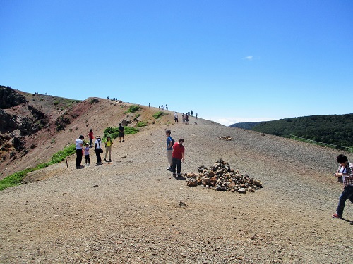 さて… 吾妻小富士の火口外周に到達しましたが… 時計まわりに行くか… 反時計回りに行くか… 反時計回りの方は、なだらかな傾斜が続きます。 拡大撮影しました。 荒々しい岩石の様子が良くわかります。 地層が斜めになっていて、どのように形成されたのか… 興味がわきますね…。 火口を撮影してみました。 火口の拡大撮影。 別角度からの火口。 ホント、何度...