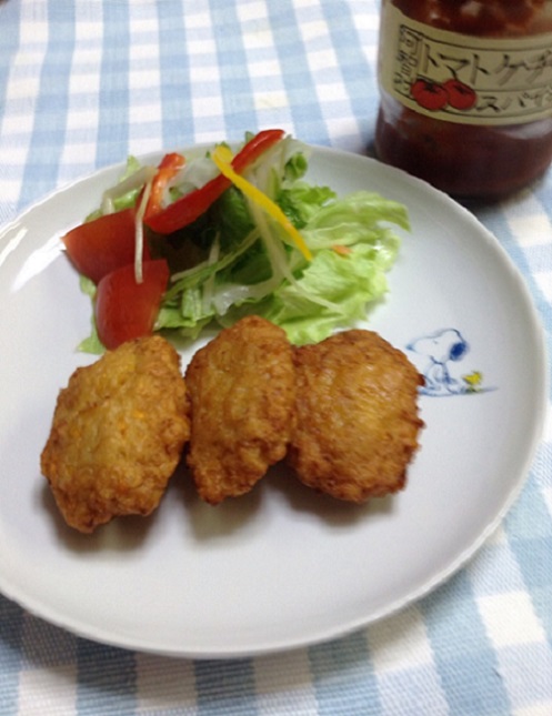 JUGEMテーマ:南信州 みなさんまめだかな!?本日の南信州(飯田市)は晴れ。。。気温も 27℃ まで上昇完全に 夏!!と いった感じでした。とは いっても朝晩は まだ 肌寒く気温の差が あるため体調を崩されている方も多いのでは!?私は 少し 夏バテ気味・・・そんな 時はおいしいものを食べて復活!!と いうことで・・・【大豆の華のナゲット】 をご紹介!!こちらの 写真は通販メンバーの Nさん撮影。。。■材料〈1人分(2個)〉大豆の華(フレーク)・・・6gむきえび ・・・・・・・・・・・15g鶏ひき...