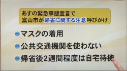 JUGEMテーマ:富山、今 1.KNB:「KNB」→「KNBニュース>県内」 ・2020.04.08 11:52 :中学生感染で富山市内小・中学校休校へ >> ・2020.04.08 19:08 :県立高校で入学式行われるもすぐ休校 「少しがっかり」 >> ・2020.04.08 19:25 :専門家が語る 若者などの感染拡大防ぐために・・・ >> ・2020.04.08 19:30 :緊急事態宣言の影響は県関係企業にも >> ・2020.04.08 19:35 :東京の県出身学生「不安あるが帰省すると広めてしまう可能性も」 >> ・2020.04.08 19:40 :小・中学校休校措置相次ぐ 新型...
