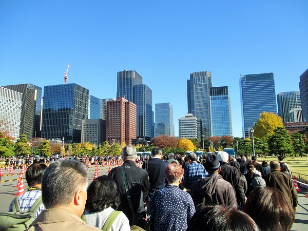 楠公レストハウスを後にして… いよいよ「大嘗宮」へ向かいます。 いつものように坂下門から入門。 係のお姉さんから地図を渡されたが… 英語バージョン… まぁ、なんとかわかるけどね。 完全ではないが、結構色づいてきてます。 さすがに大勢の方が見学に来ていますよ! こちらのもみじはまっさかりでしたね〜! みなさん、まわりにたくさん集まってましたよ! 西桔橋の辺りか...