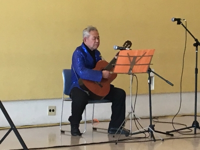 JUGEMテーマ:栃木県 那須お笑い倶楽部のイベントは交流ホールにて。 今回は、ねこまんま から譲ってもらったギター、ZO-3(ぞうさん)もお披露目。
