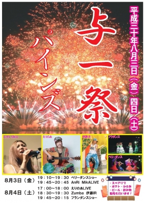 JUGEMテーマ:栃木県 武者行列、流し踊り、与一太鼓などありますが、パインズ温泉ホテルのステージでは、地元ミュージシャンのステージもありますので、皆様お越しくださいませ。 大田原の夏を楽しみましょう。 会場:パインズ温泉ホテル大田原駐車場 栃木県大田原市新富町2-3-33 ※当日は交通規制があります。車でお越しの際は、指定の駐車場をご利用ください。 入場無料 8月3日(金) -16:10 音出し、リハ 15:40-16:10 松野二朗 16:10-16:40 natsuko 16:40-17:10 原...