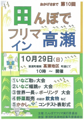 JUGEMテーマ:栃木県 なんと、レディオベリーでもお馴染みのLaughのライブもあります。 ライブは10時からの予定♪ 充実のコンテンツ♪ ・Laughライブ ・いなご取り大会 ・いなご幅跳び大会 ・世界一長いボーリング大会 ・野菜卸売りのほか飲食物など ・かかしコンテスト表彰式