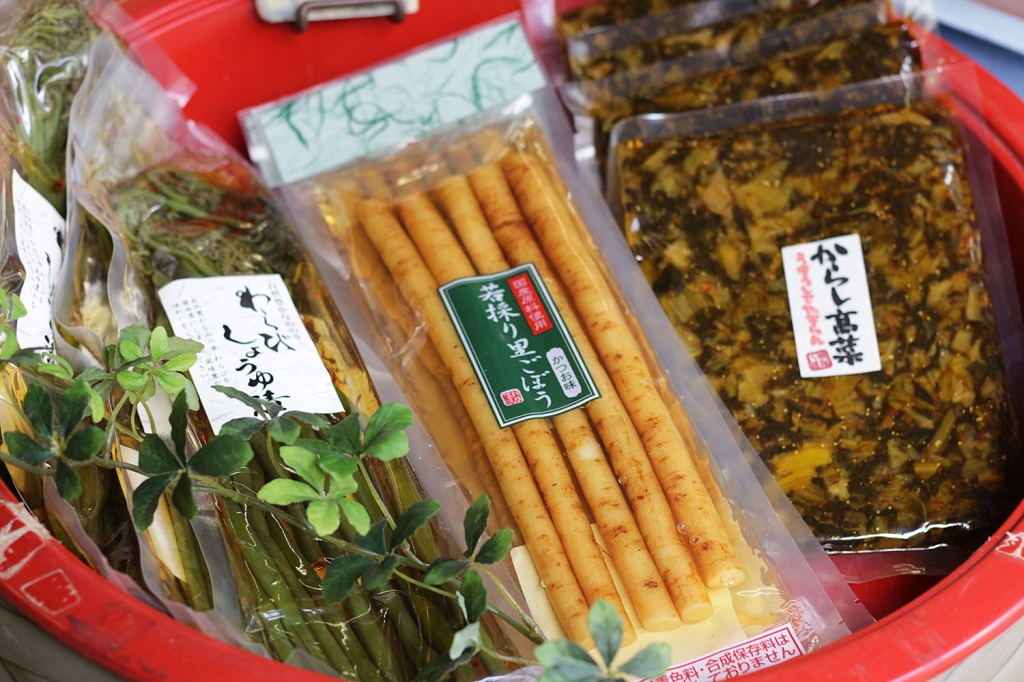 【商品情報】こんにちは!味噌専門店 坂本商店です。 昨日はレジ横の商品でしたが、今日はレジ前の商品のご紹介です。 入り口すぐのレジ前の桶に入った漬物3種類です。 まずは以前、一瞬で完売してしまった青菜漬(せいさいづけ)と同じ生産地、山形の尾花沢からの2種類の漬物のご案内です。 若い国産ごぼうをかつお風味のしょう油調味液につけた「若採り里ごぼう」と、珍しいロシア産のわらびを醤油調味料につけた「わらびしょうゆ漬け」です。 食...