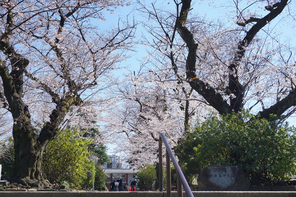 【新井薬師情報】こんにちは!味噌専門店 坂本商店です。 現在、新井薬師の北野天神では桜が見頃です。 鳥居のすぐ奥で左右にピンク色の花が華やかに咲いています。 桜の種類はプリンセス雅。 皇后雅子様が、皇太子妃の時代にご成婚記念として命名された種類だそうです。