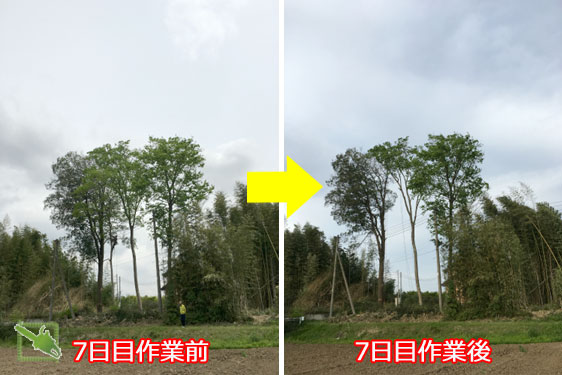 当ブログへようこそお越しくださいました。 最後まで読んで頂ければ幸いで御座います。 ご依頼有難う御座いました。 茨城県古河市の雑木林伐採、7日目(4/26)です。 伐採する雑木は、樫の木9本、犬四手6本、檜4本、杉2本、モミの木1本、ハンノキ1本の大小合わせ、合計23本です。 本日までで、樫8本、杉2本、檜4本、モミ1本、ハンノキ1本、犬四手3本を伐採しました。 残すは、犬四手3本と樫1本の4本となりました。 長方形の雑木林の敷地面積3分の...