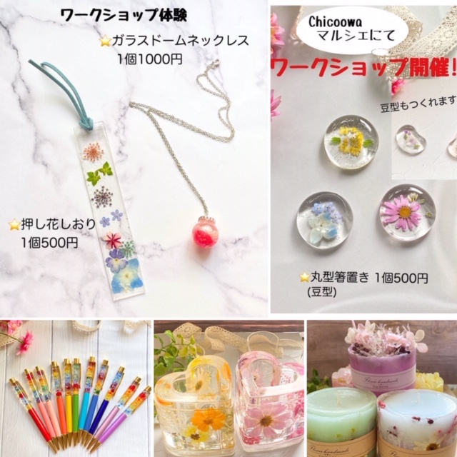 JUGEMテーマ:ハンドメイド雑貨のお店 JUGEMテーマ:練馬区 こんにちは。 連日掲載中の「chicoowaマルシェご出店作家さんのご紹介」ですが今日は「Flor bonita」さん(*^-^*) とにかくお花が大好きな心優しき作家さんです! 春から中止に次ぐ中止で落胆されていた方のおひとりなので今回はメチャメチャ気合入ってます(^^)v 順序が逆転しますが画像下部左からハーバリウムボールペン、レジンにお花を閉じ込めた小物入れ(ペンスタンド)、そしてアロマキャンドルなどなど。そのどれもにお花が使われ...
